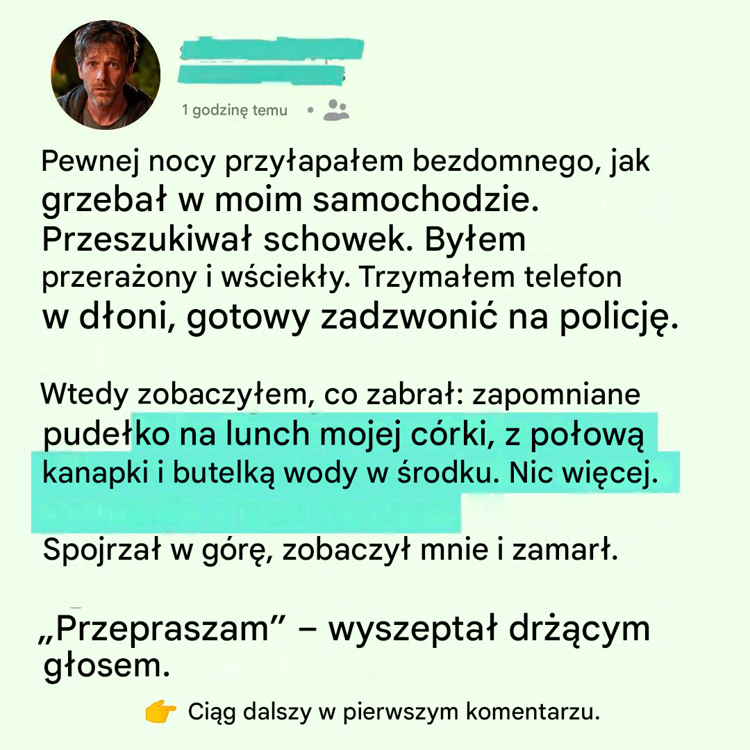 W tym momencie pomyślałem o mojej córce, która spała na górze. O tym, jak łatwo mogłem zadzwonić na policję. O złości, którą czułem jeszcze kilka sekund wcześniej… i która wyparowała w jednej chwili.