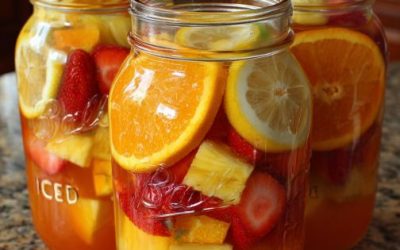 Składniki 4 szklanki soku pomarańczowego, 2 szklanki soku ananasowego, 1 szklanka soku z mango, 1 szklanka wody gazowanej , 1/2…