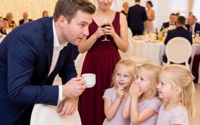 Wdowiec siedział sam na weselu, aż trzy małe dziewczynki szepnęły: „Udawaj, że jesteś naszym tatą, żeby nasza mama nie siedziała sama” — to, co zaczęło się jako przysługa, stało się rodziną, jakiej nigdy nie planował