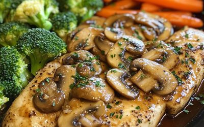 Kurczak z sosem grzybowym i warzywami gotowanymi na parze