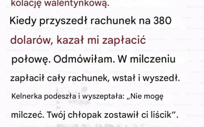 Czasami najbardziej odkrywcze momenty w związku jawią się w przebraniu, jako zwyczajne sytuacje. Dla pewnej kobiety wieczór, który miał być…