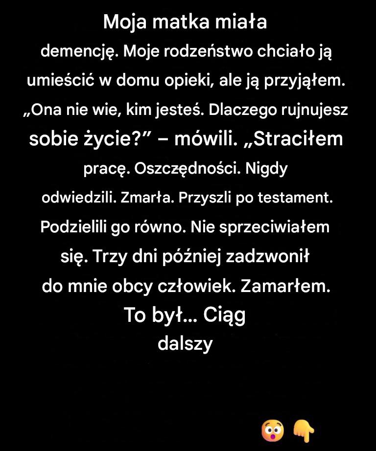 Opieka domowa powoli rozwalała moje życie. Najpierw godziny pracy stały się krótsze. Potem praca zniknęła. Pieniądze płynęły na leki, modyfikowane posiłki, poręcze, ciche rozwiązania na hałaśliwe noce. Mój świat stawał się coraz mniejszy. Moje dni wypełniały jej rutyna, jej nastroje, jej kruchy spokój.